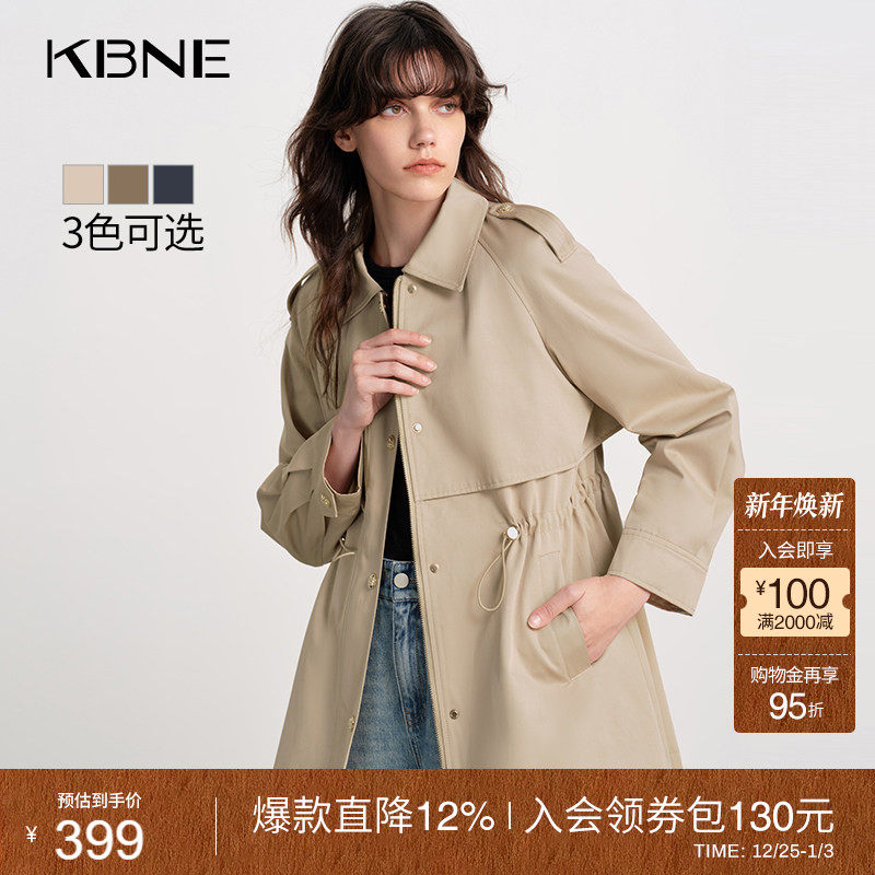 KBNE巴恩风卡其色风衣女小个子2025秋冬新款气质英伦宽松中长外套