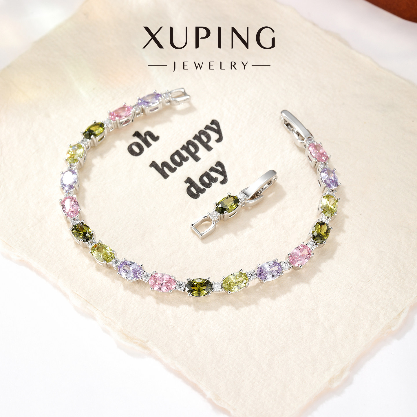 旭平彩宝系列微镶轻奢气质时尚爱心手链手表扣七夕送闺蜜女友礼物