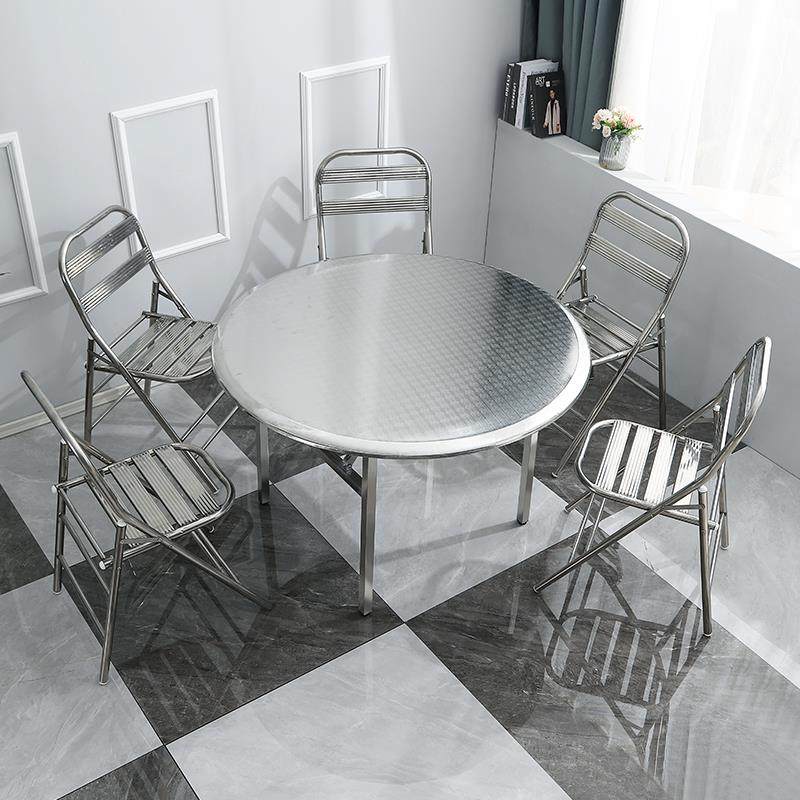 不锈钢折叠桌圆桌经济型饭店大排档流水席出租屋家用吃饭圆形餐桌