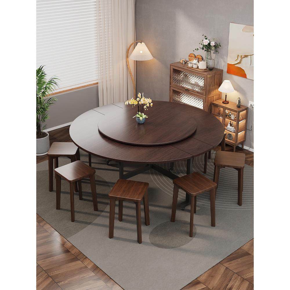 折叠餐桌家用小户型吃饭桌子出租房多功能简易转盘圆桌可移动饭桌