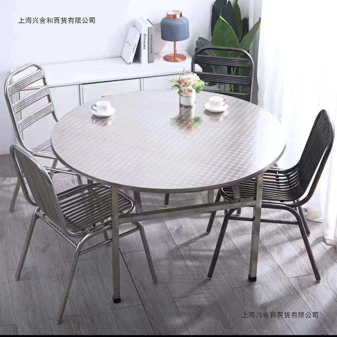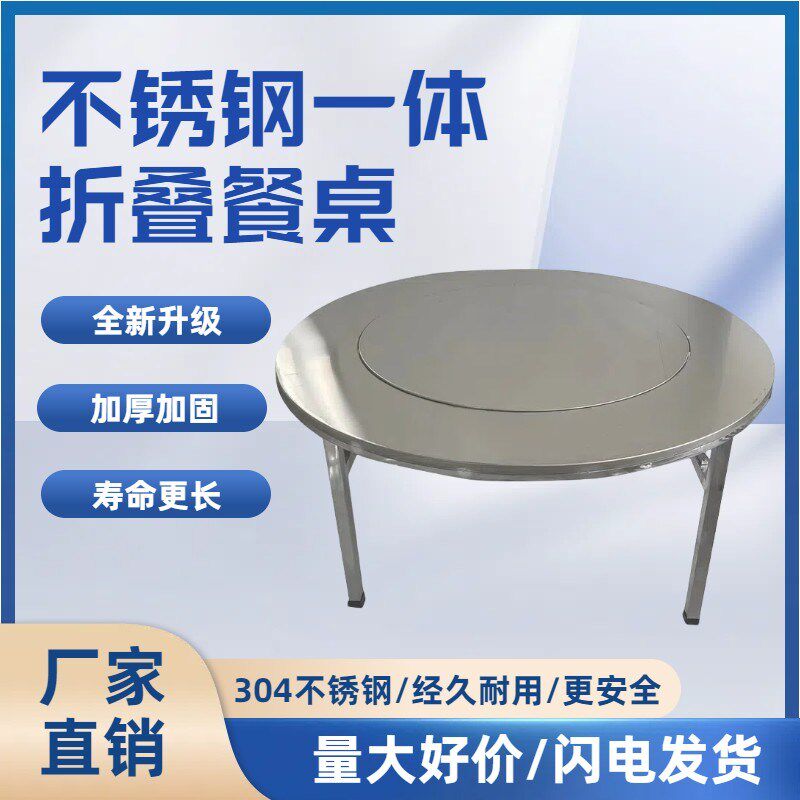 304不锈店折叠桌圆桌转盘饭大席排档流水-摆摊家用吃饭圆形钢餐桌