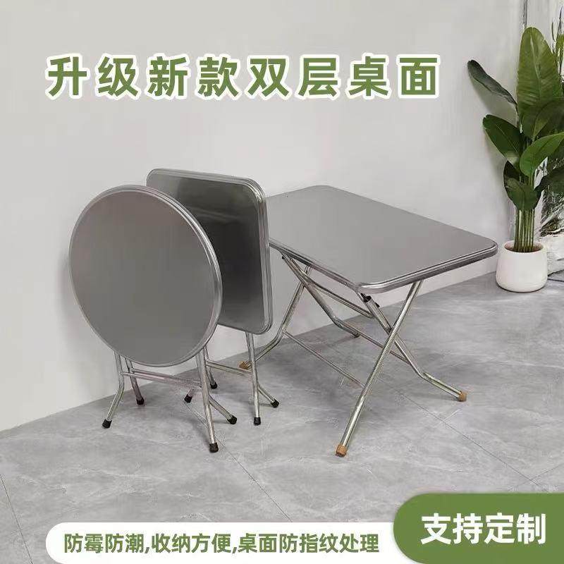 不锈钢折叠桌圆桌面户外摆摊吃饭桌圆形家用方桌圆台连体餐桌桌子