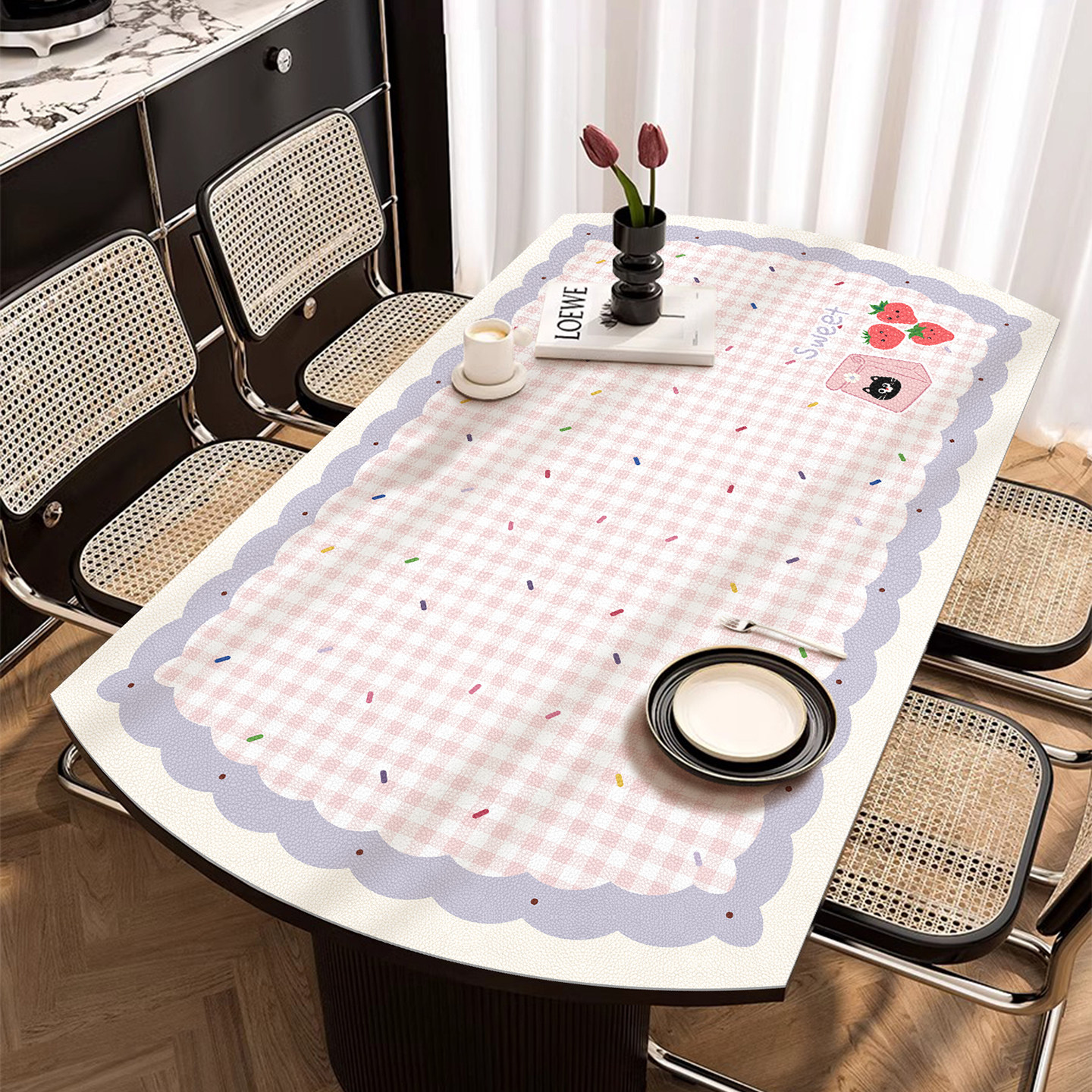 韩系ins风椭圆形桌垫弧形餐桌防水防油免洗桌布折叠桌圆桌pvc垫子