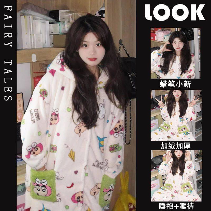 - 珊瑚绒睡衣女加绒加厚