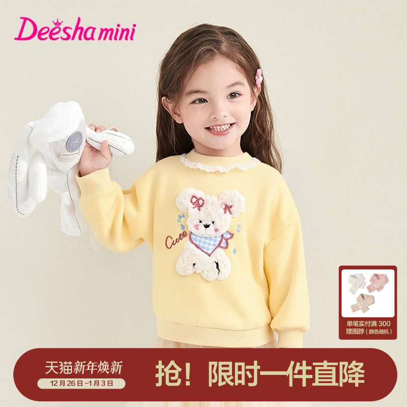 笛莎官方旗舰童装女童长袖卫衣秋冬季新款宝宝儿童厚绒保暖打底衣