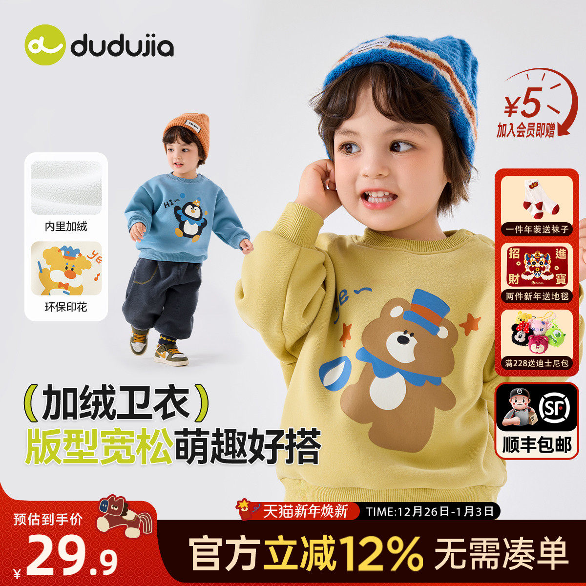 dudujia儿童卫衣秋冬款男童上衣洋气宝宝长袖冬装时髦女童外套秋
