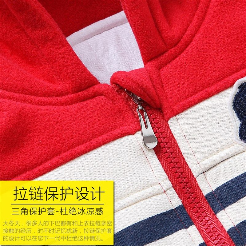 [420g抗起球]齐齐熊男童加绒卫衣一体绒秋冬款宝宝红色儿童保暖衣