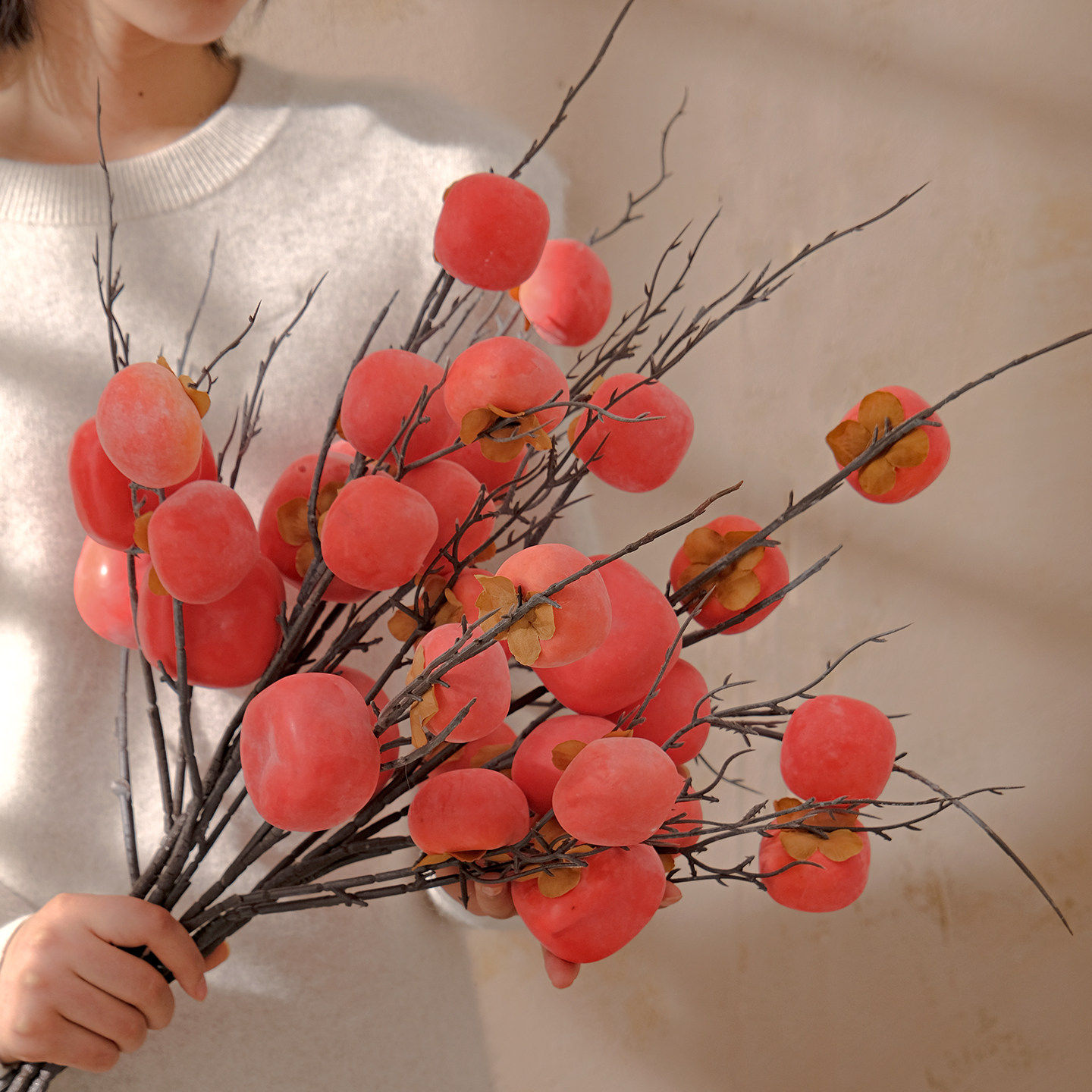 2026新年仿真花红果仿真柿子插花艺装饰客厅摆件餐桌石榴假花道具