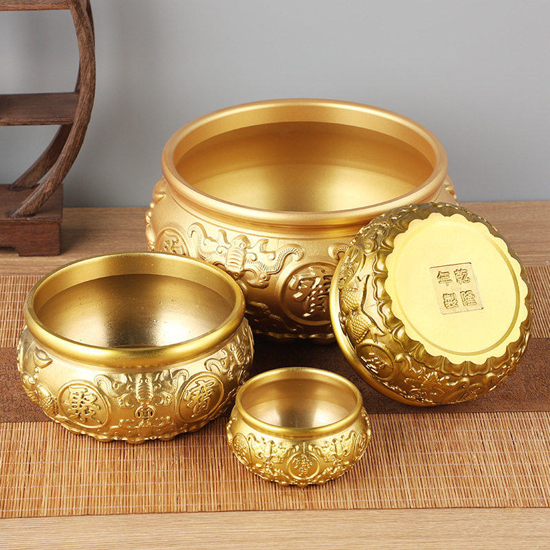 黄铜八福聚宝盆实心铜盆客厅摆件复古八福店铺开业装饰存钱罐礼品