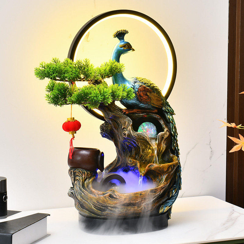 招财流水摆件孔雀循环水风水轮办公室玄关客厅摆件开业乔迁装饰礼