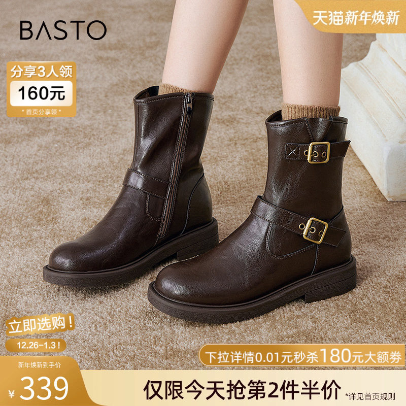 - 圆头短靴女 英伦