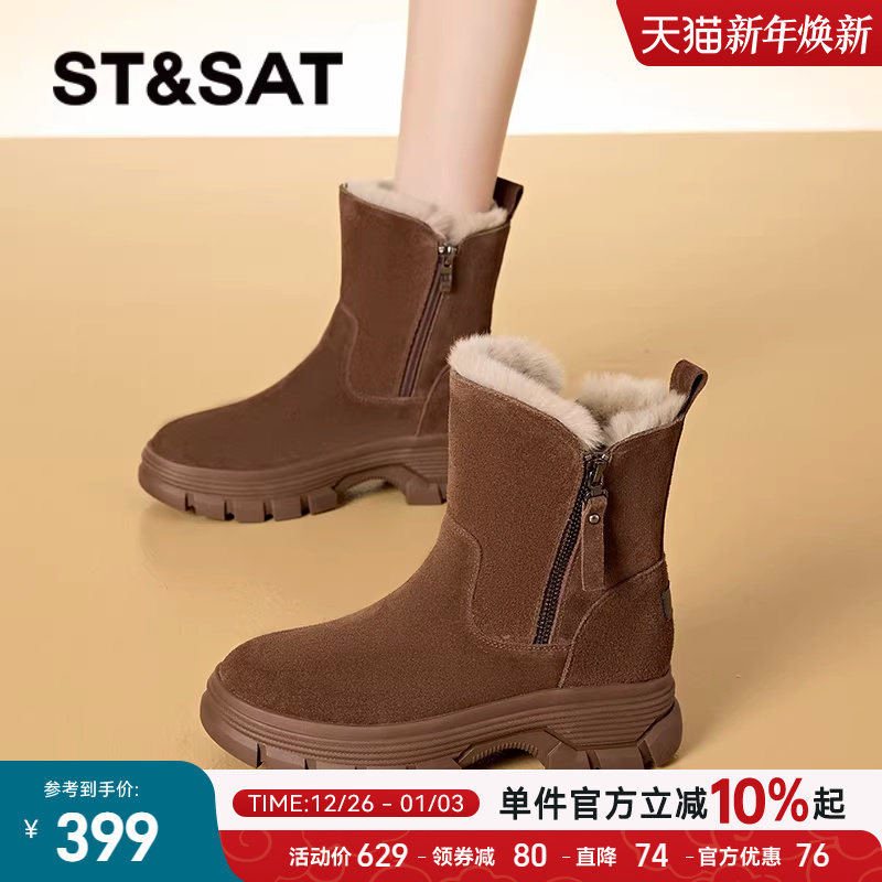 - 羊皮毛一体雪地靴短靴