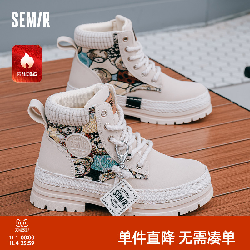 Semir女鞋马丁靴女2025新款秋冬季加绒雪地靴厚底棉鞋小个子短靴