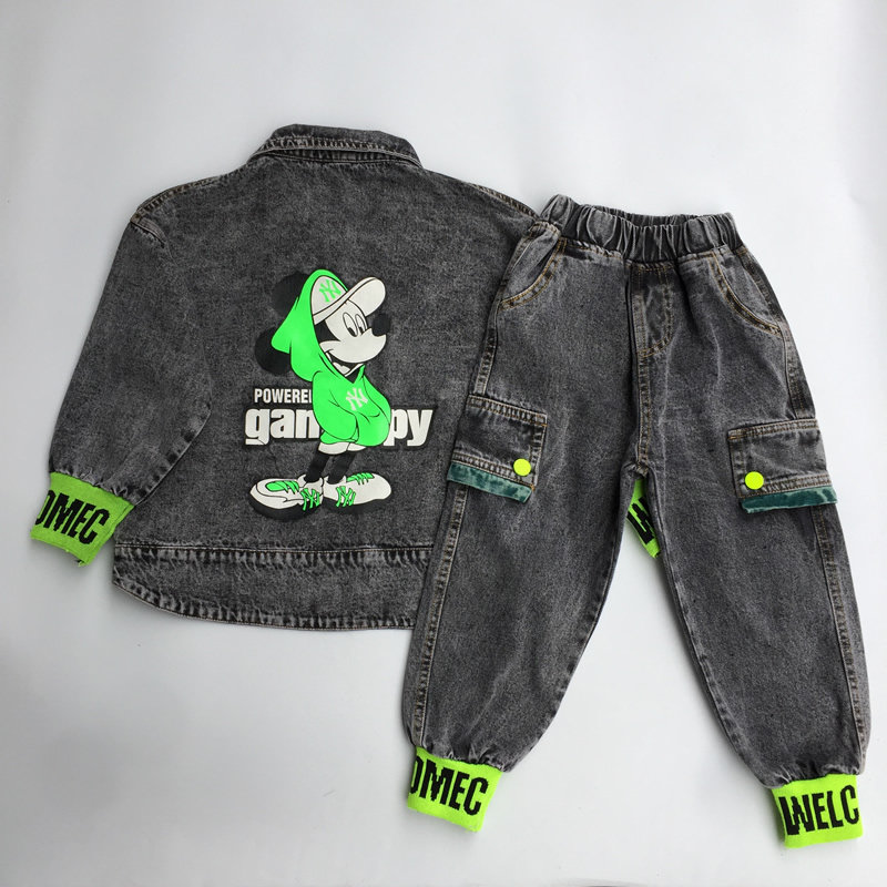 宝宝春秋季套装2-9岁潮韩版4儿童米妮牛仔外套夹克男女牛仔二件套