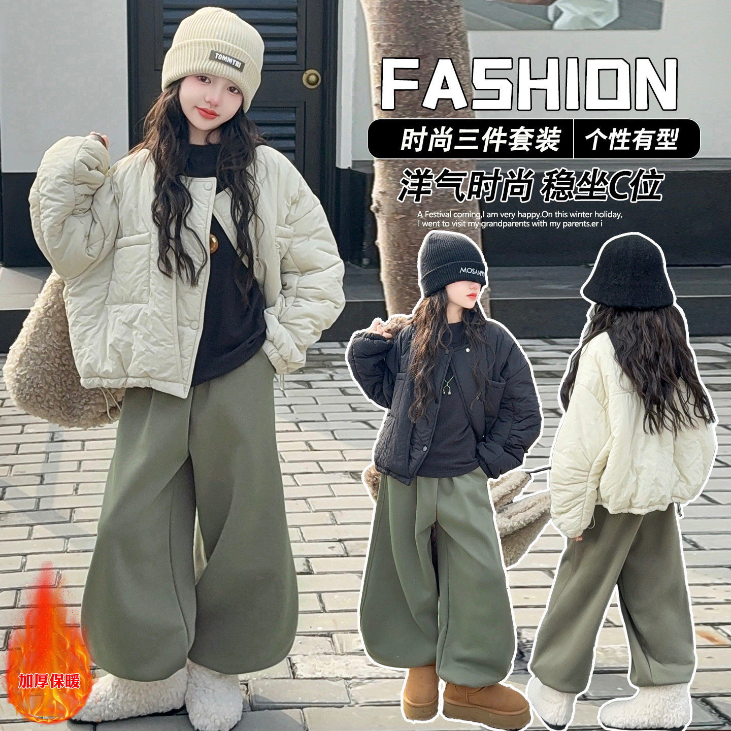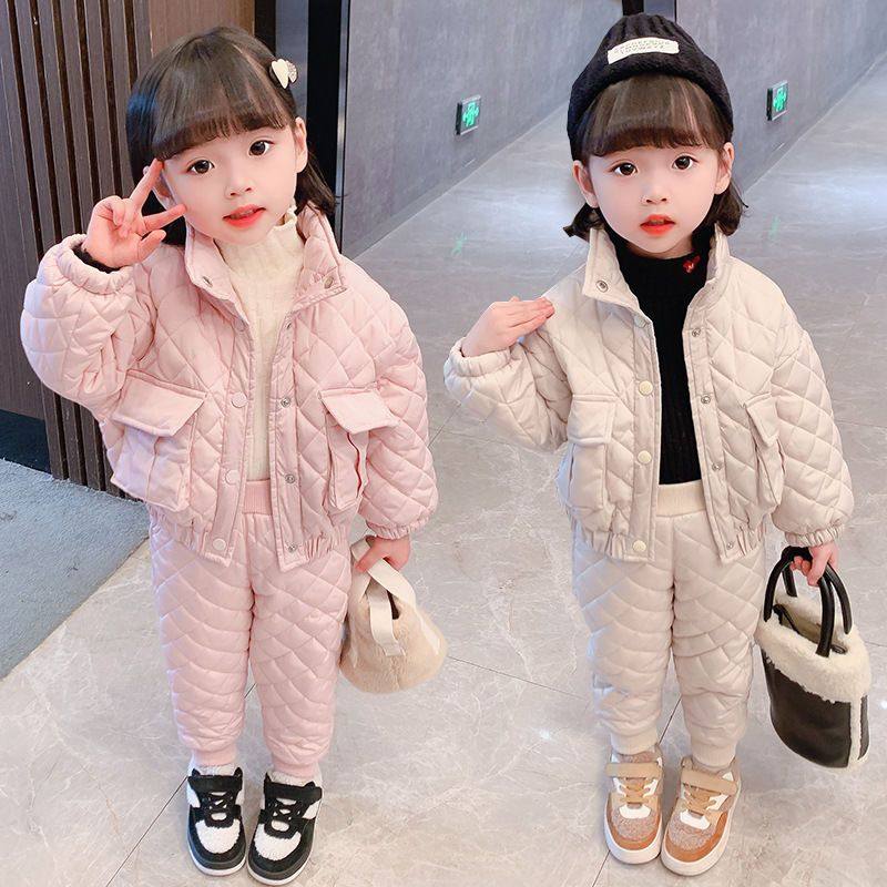 女童棉衣套装冬装韩版洋气加厚潮范穿搭二棉外套加绒阔腿裤两件套