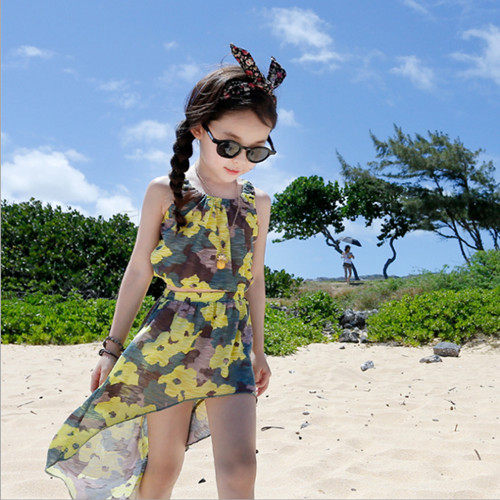 1119韩版夏季时髦男童两件套74257拼接印花背心+松紧腰花短裤套装