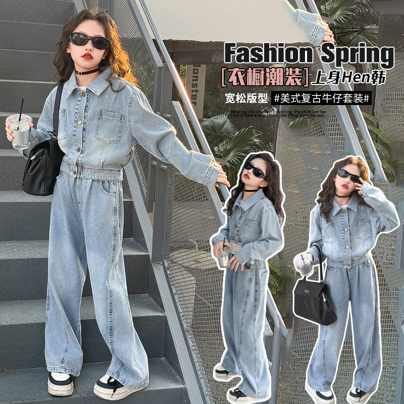 女童秋季牛仔套装时尚2025新款中大童牛仔外套牛仔裤两件套韩版潮