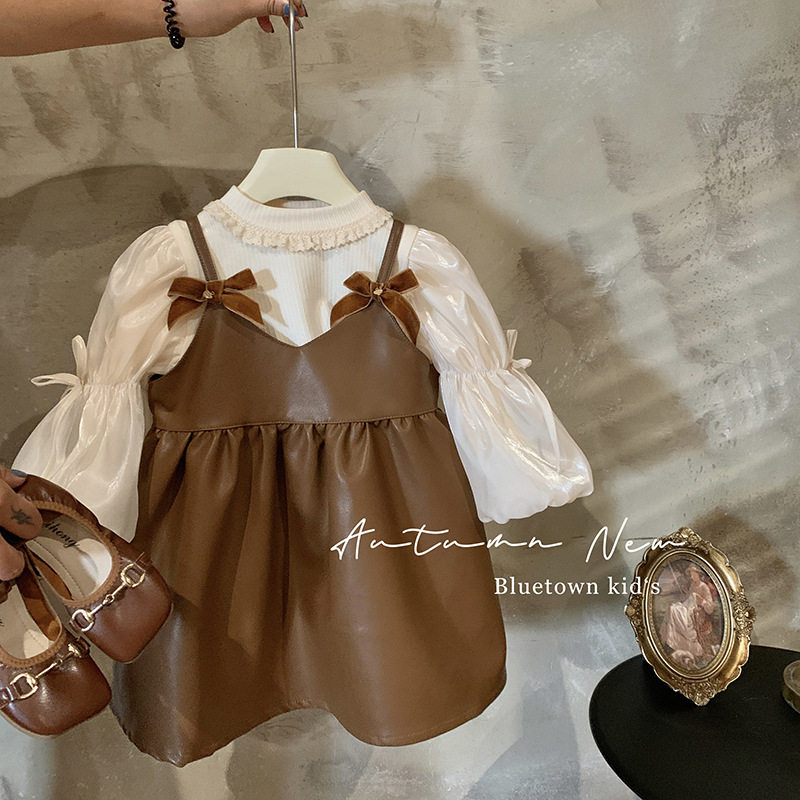 时髦童装2023秋季新款女童韩版洋派洋装打底上衣背心裙二件套装