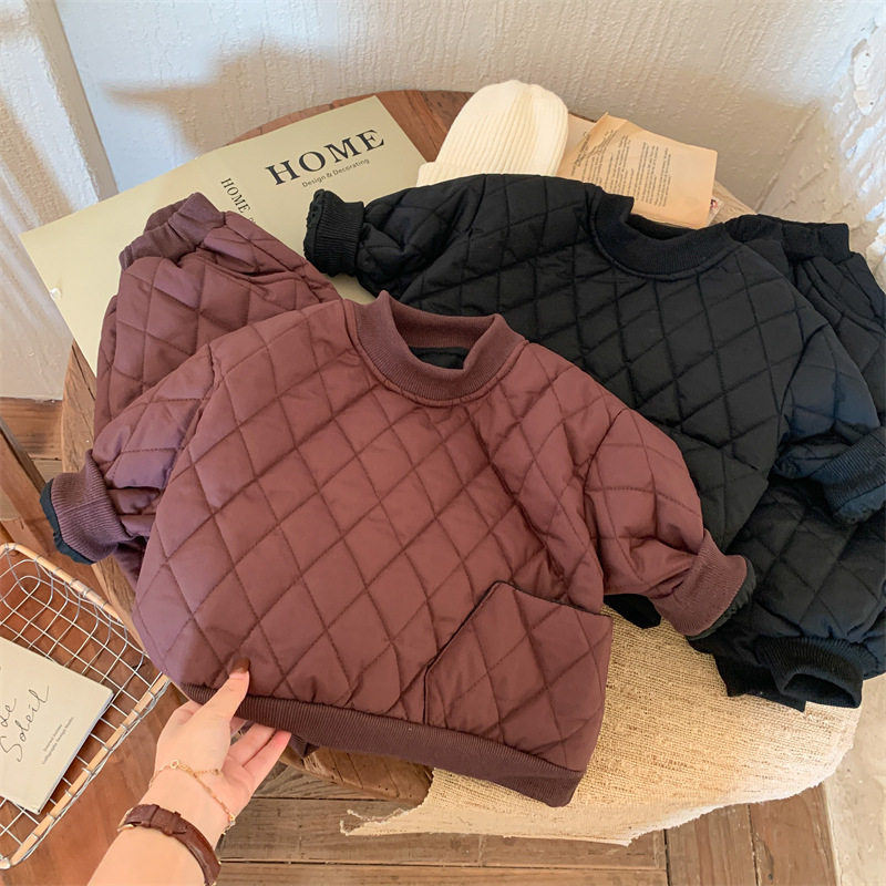 蒙田童装男女童韩版纯色绗棉套装中小童加厚上衣裤子二件套潮潮范