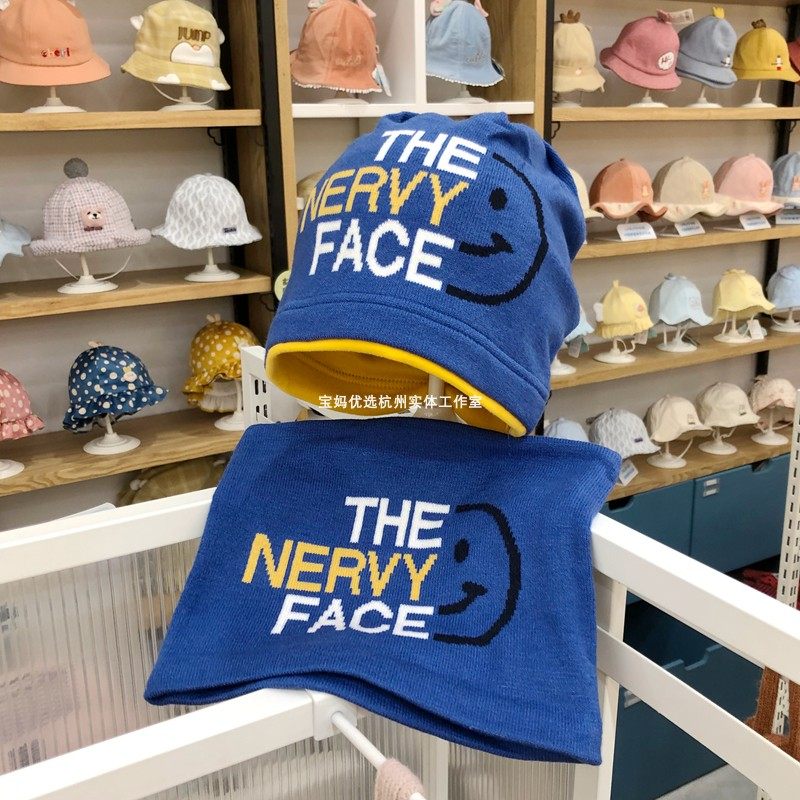 韩版男女儿童网红堆堆帽宝宝保暖薄款针织套头帽套装毛线帽二件套