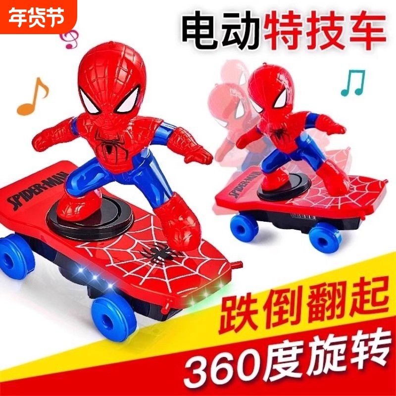蜘蛛翻滚侠特技车儿童玩具车男孩宝宝小孩电动蜘蛛滑板车子人抖音