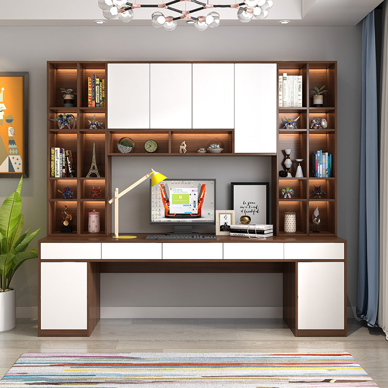 匠郁苑书桌书架一体桌双人轻奢办公桌书柜电脑桌家用台式学习桌子