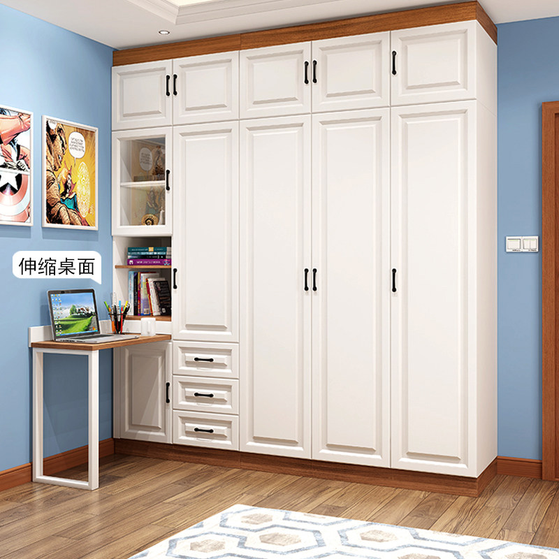 现代简约转角书柜电脑桌 儿童书桌连体组合衣柜 学习桌一体储物柜