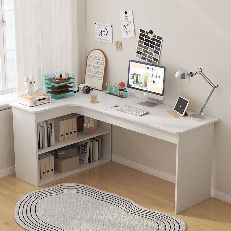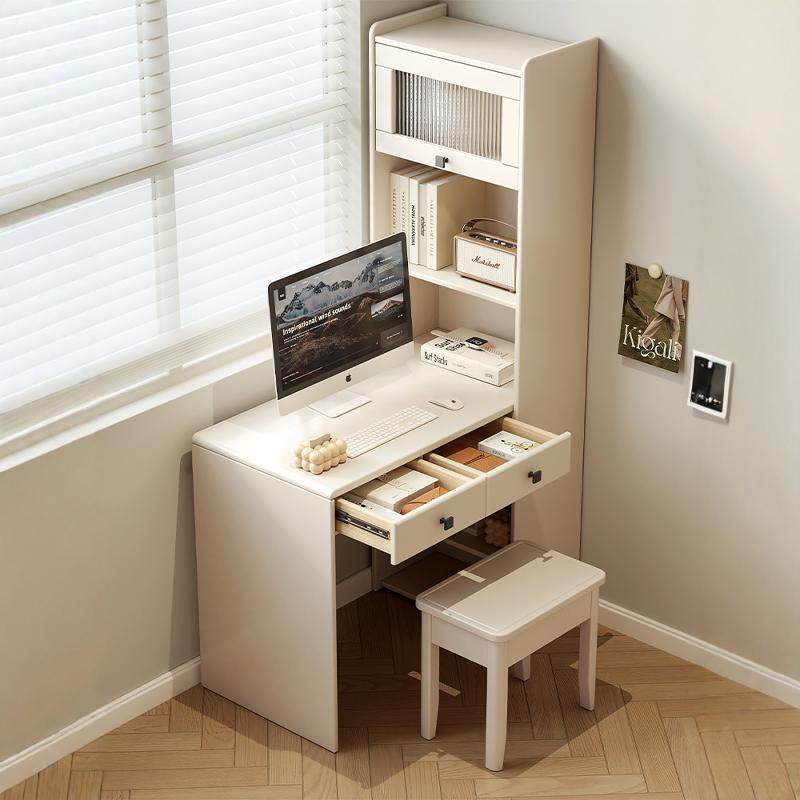 奶油风书桌书架床头柜一体卧室家用学习办公桌转角书柜电脑桌L55