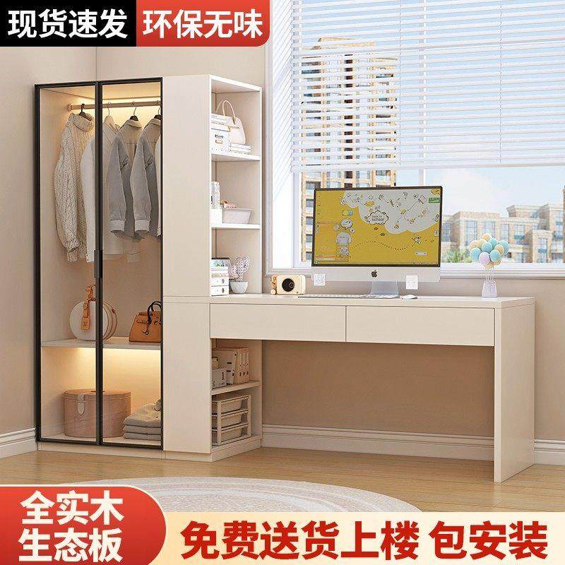 实木书桌衣柜一体桌组合家用靠墙转角书架书柜电脑桌学习桌写字桌