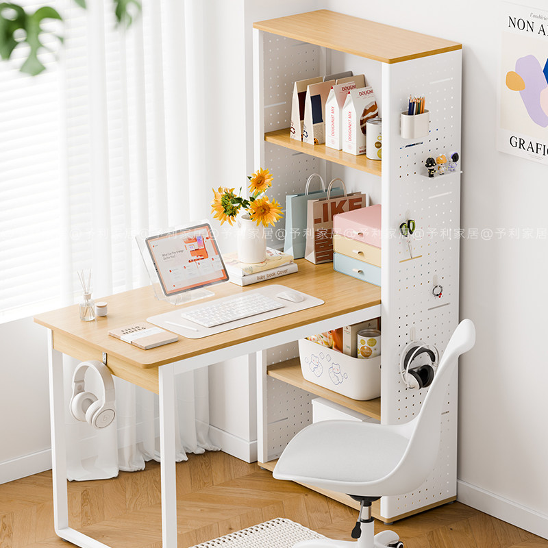 五金少女电脑桌书桌书架组合小户型学习桌子洞洞板书柜一体置物架