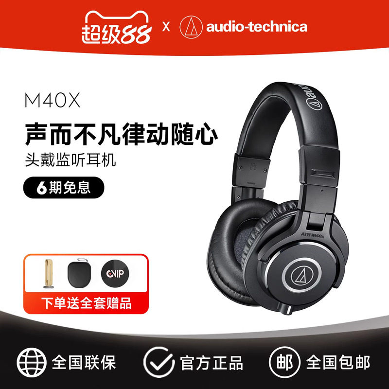 铁三角ATH-M40X头戴式专业录音监听耳机 有线贝斯电钢电吉他耳返