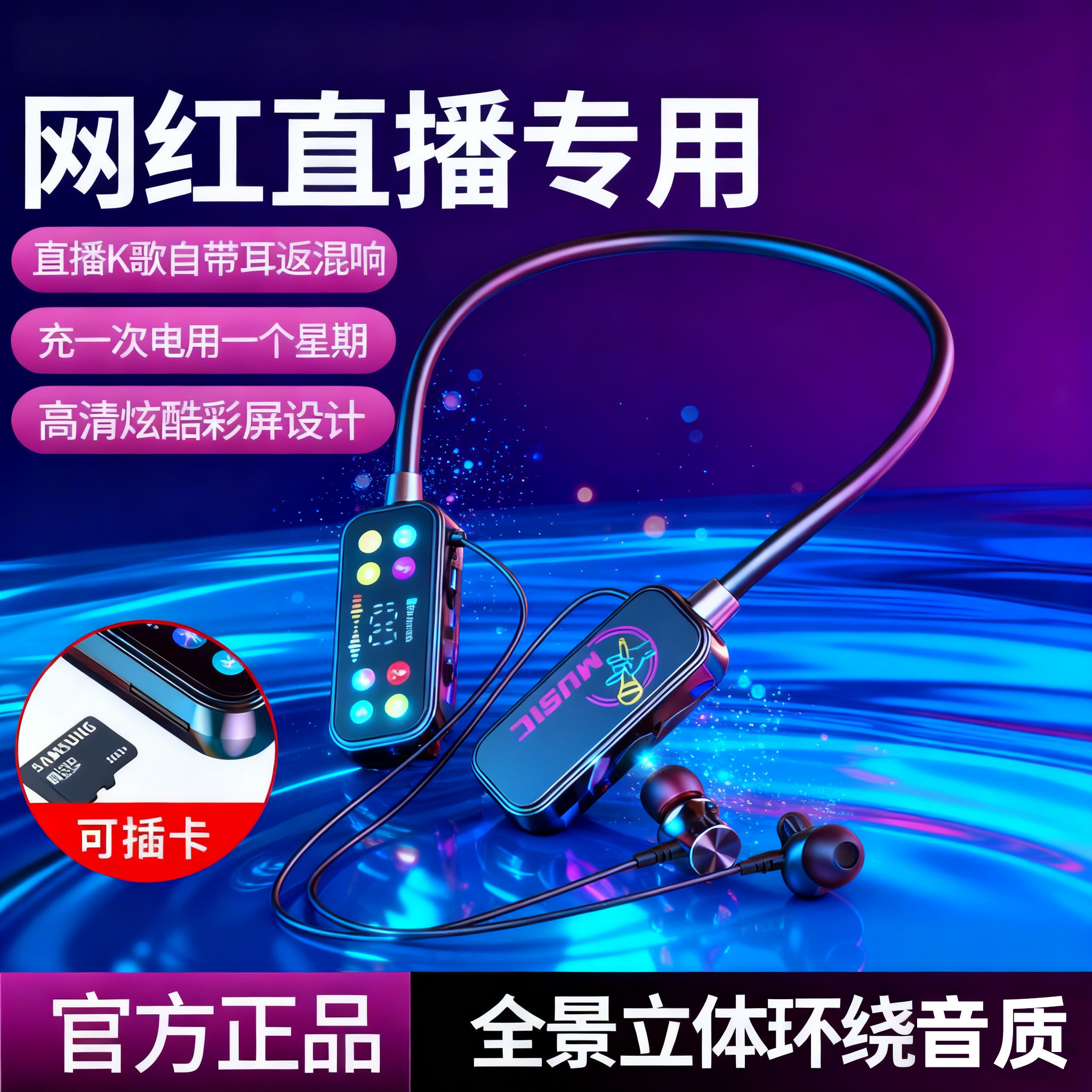全民K歌蓝牙耳机挂脖式无线运动跑步直播专用长续航唱歌耳返耳麦