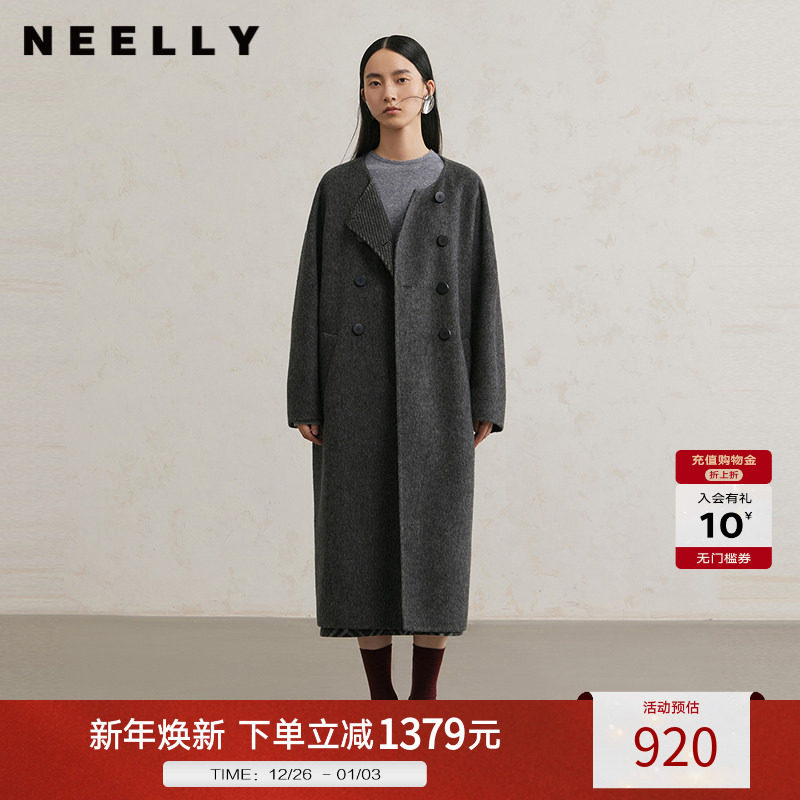 NEELLY纳俪商场同款冬季新款绵羊毛质感大衣女直筒宽松大衣外套