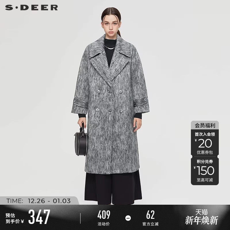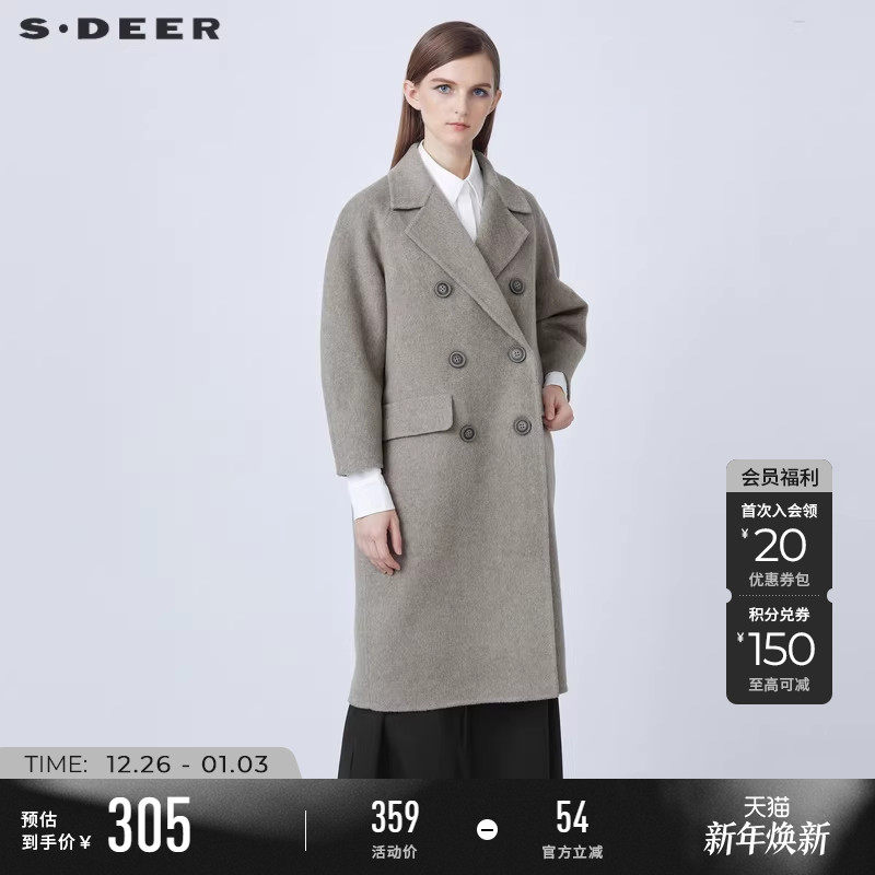 sdeer圣迪奥冬装女装休闲西装领双排扣直筒宽松毛呢大衣S21481831