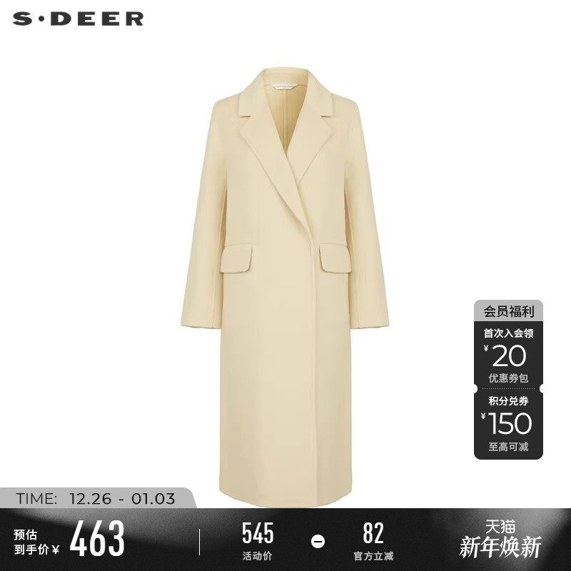 sdeer圣迪奥秋装女装OL风西装领直筒双面呢长款大衣S233Z2524