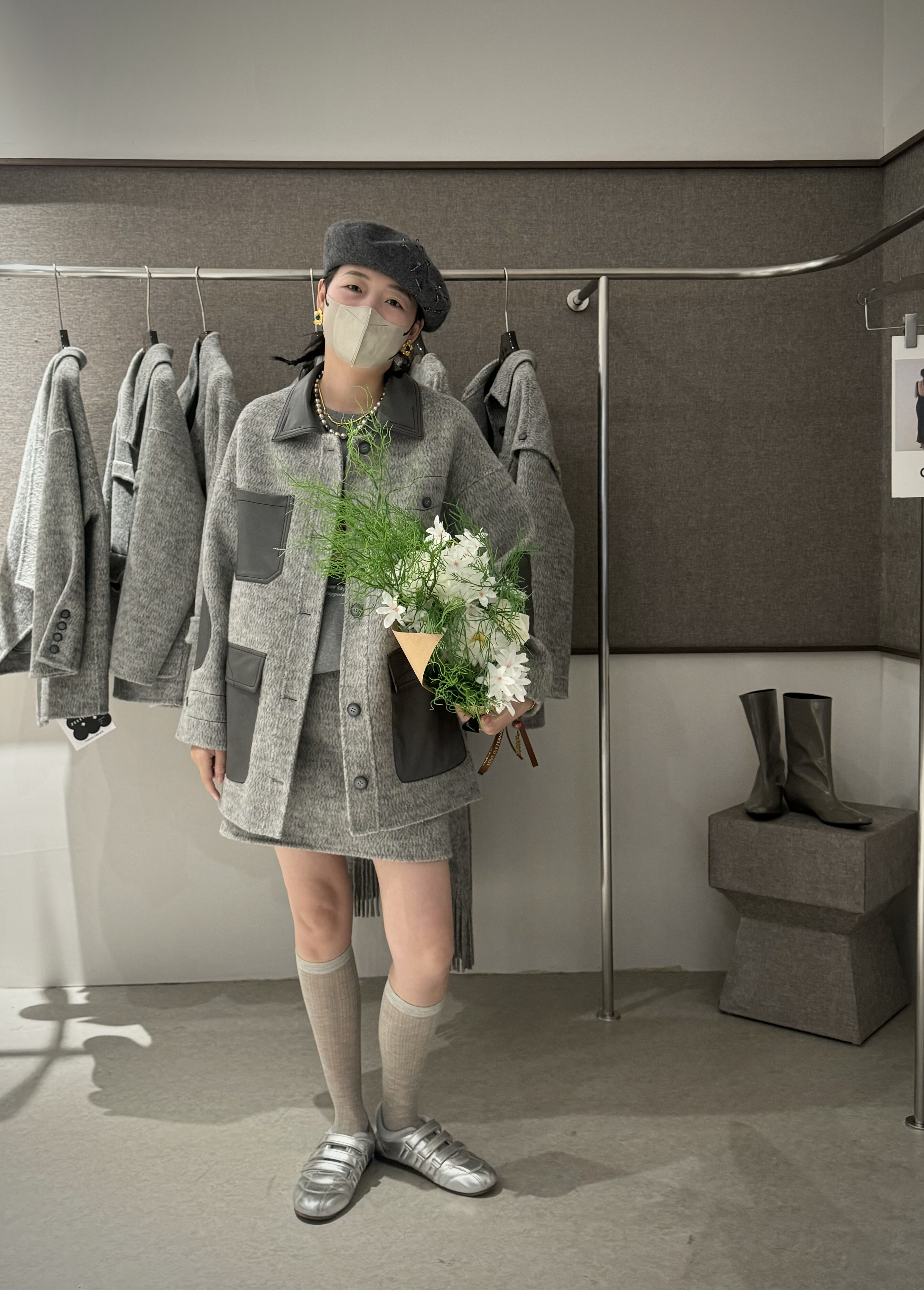 - 灰色毛呢大衣 女
