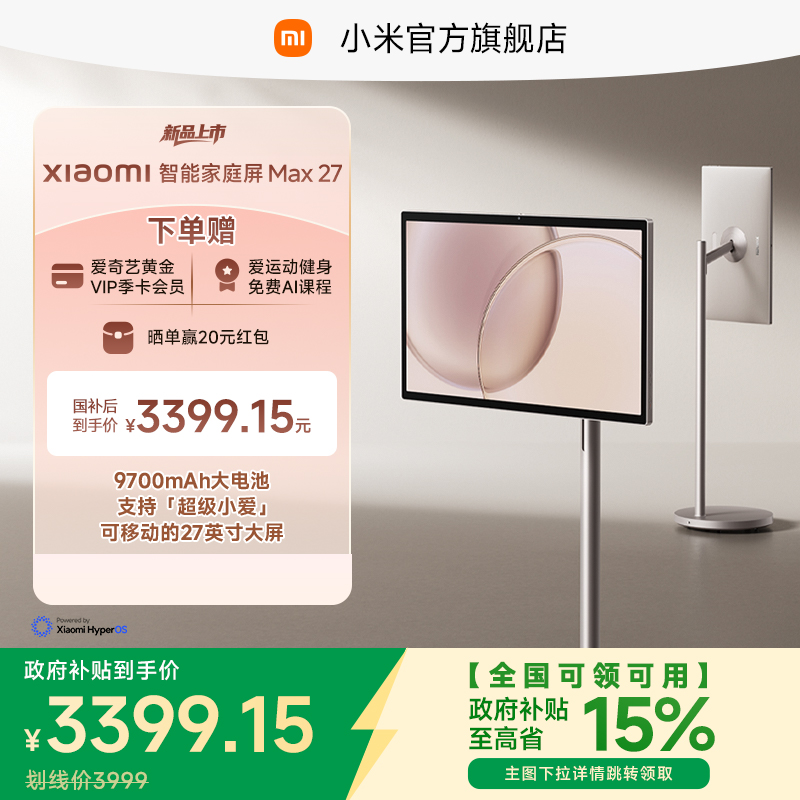Xiaomi 智能家庭屏 Max 27小米闺蜜机27英寸128GB可移动电视大平板升降娱乐观影追剧健身k歌AI随心屏自由投屏