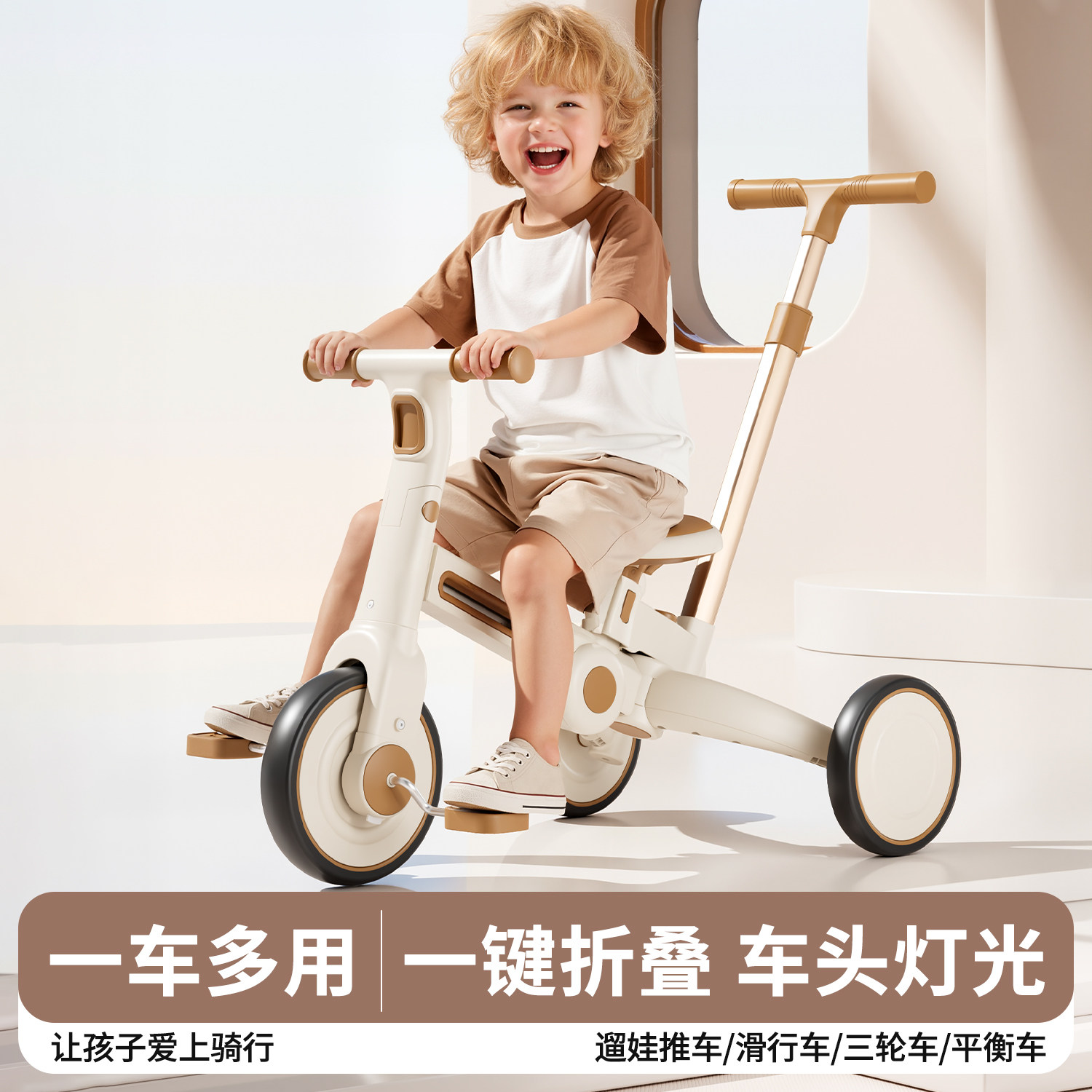 宝宝三轮车脚踏车学步车宝宝遛娃婴幼儿可折叠玩具童车平衡滑行车