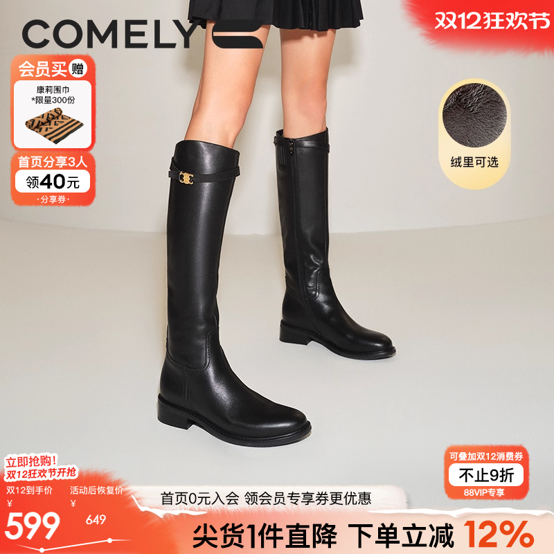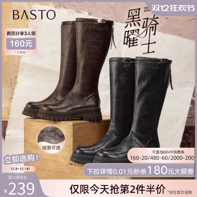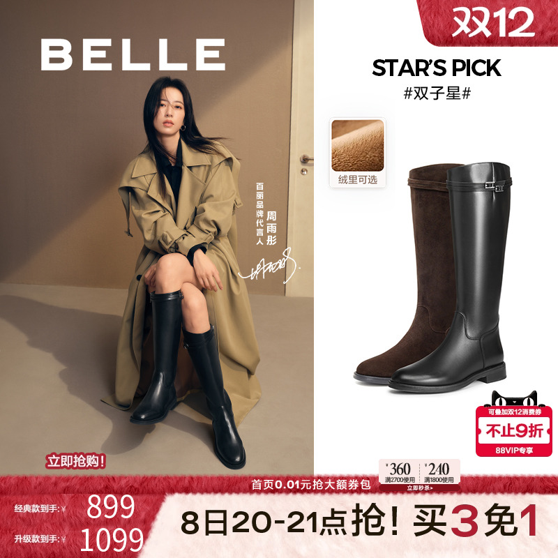 【黄梦莹同款】百思图黑曜骑士25冬商场新款加绒骑士靴女高筒长靴