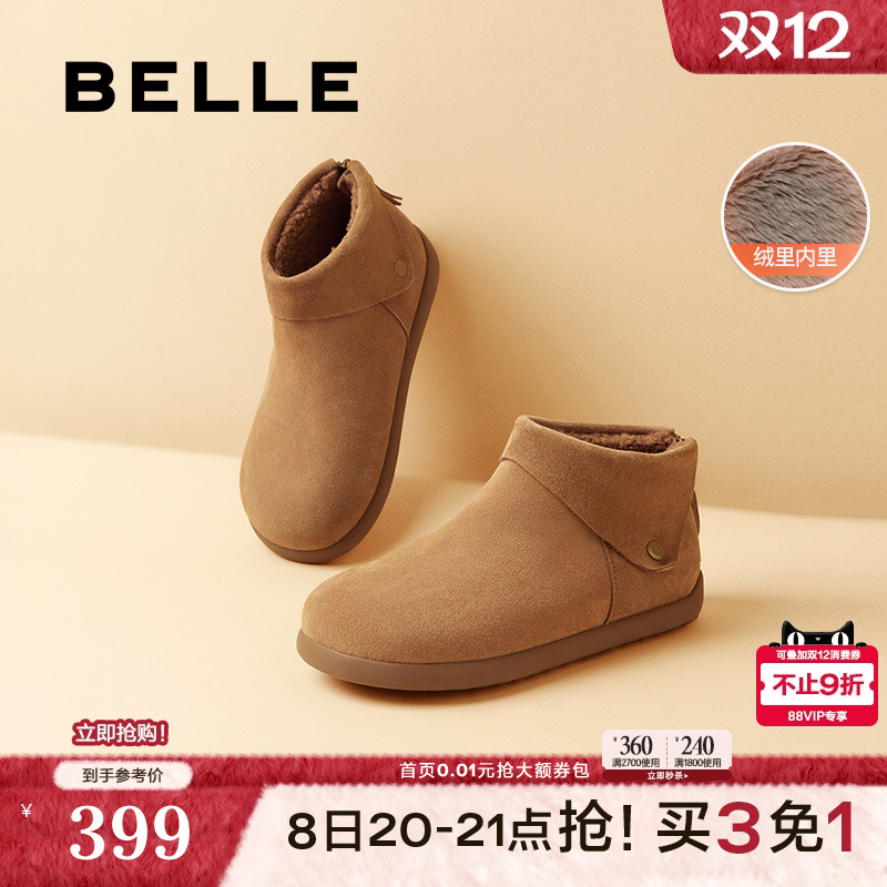 君妍同款百丽小暖炉2代厚底雪地靴女棉鞋加绒保暖短靴D1K2DDD4预