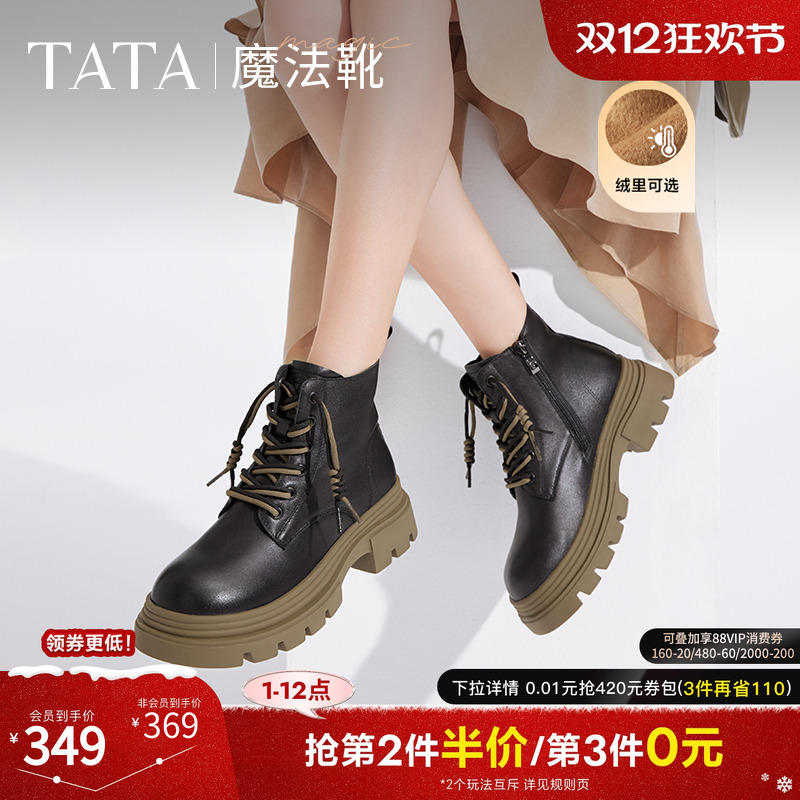 张淼怡同款Tata他她魔法靴厚底马丁靴女靴子加绒短靴冬CES01DD4