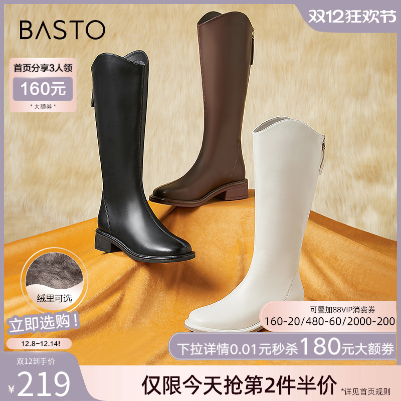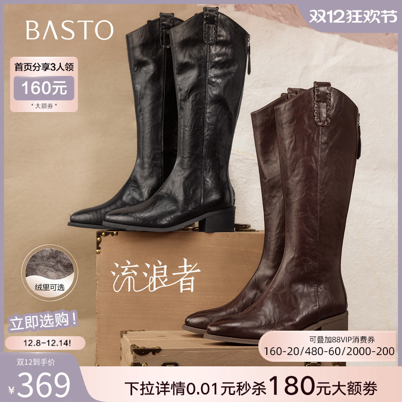 【关晓彤同款】百思图流浪者冬商场新款加绒大筒围V口骑士长靴女