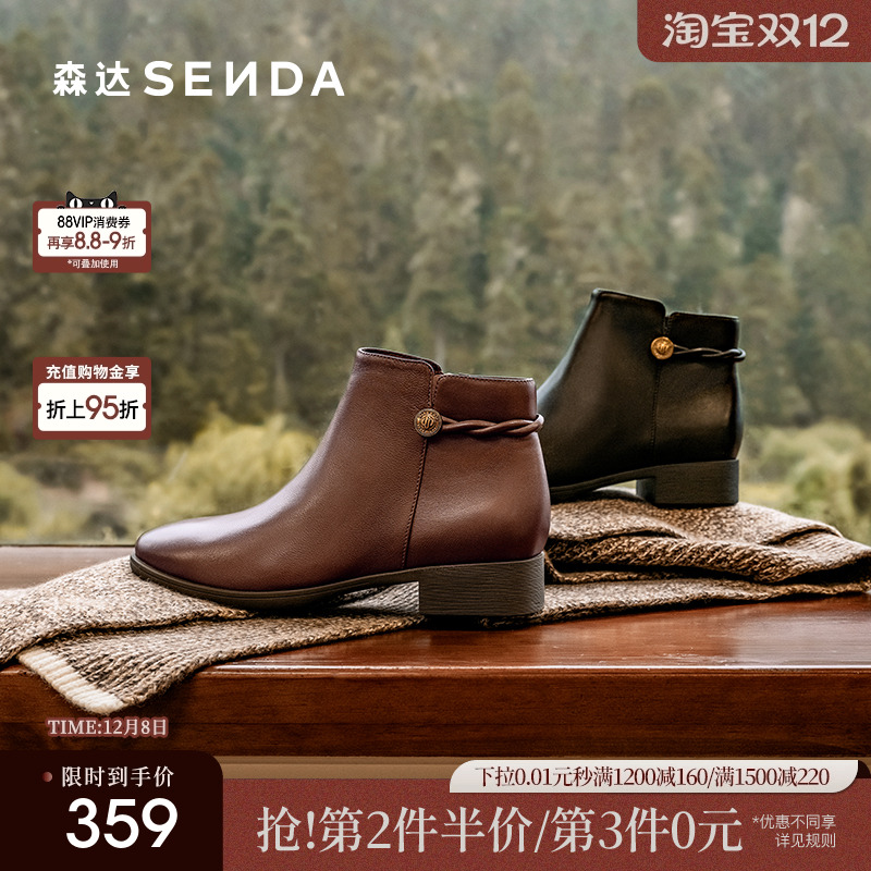 森达时装靴女鞋冬款商场同款超软羊皮柔软百搭时尚厚底短靴4T6B2