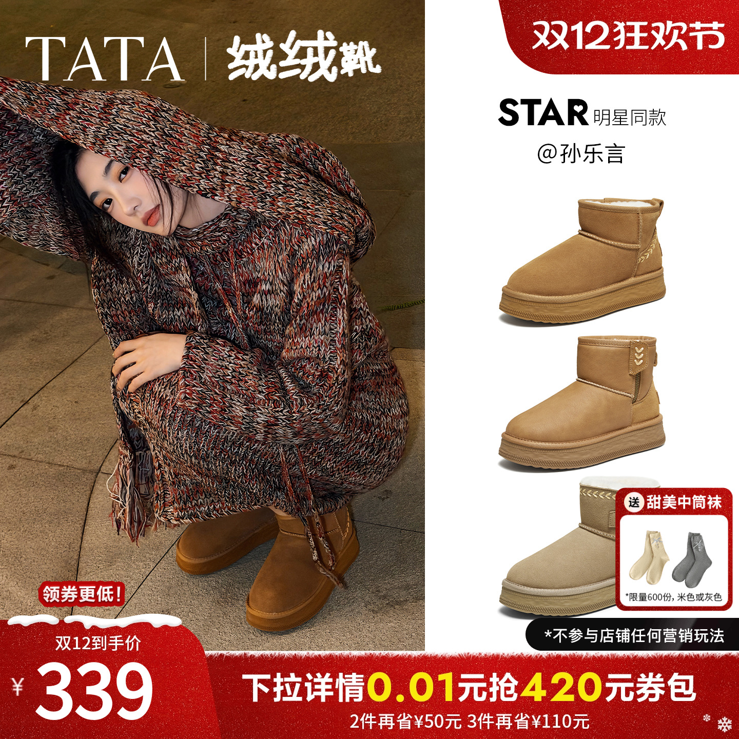 孙乐言同款TATA他她绒绒靴雪地靴女鞋加绒保暖冬毛毛棉鞋CWX01DD5