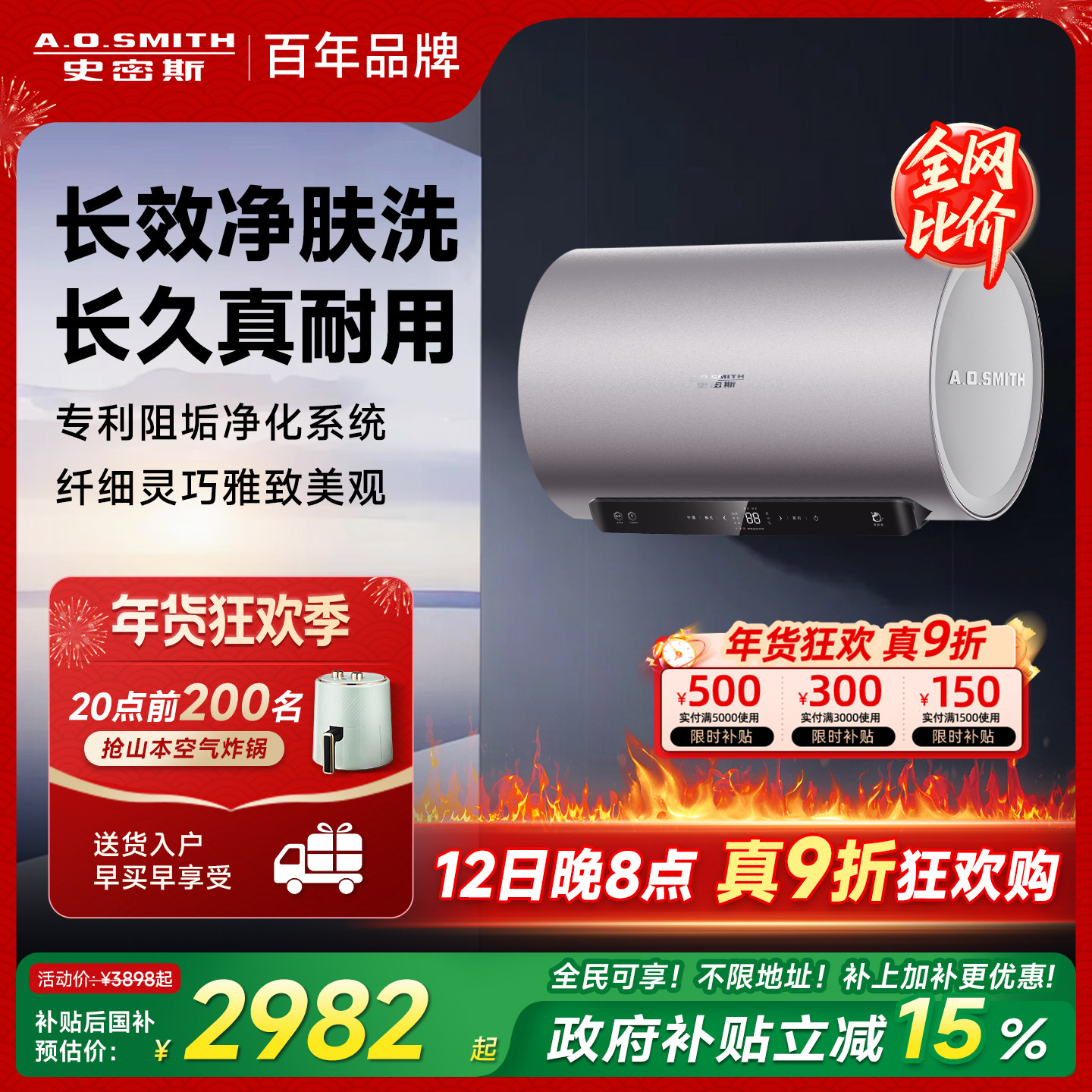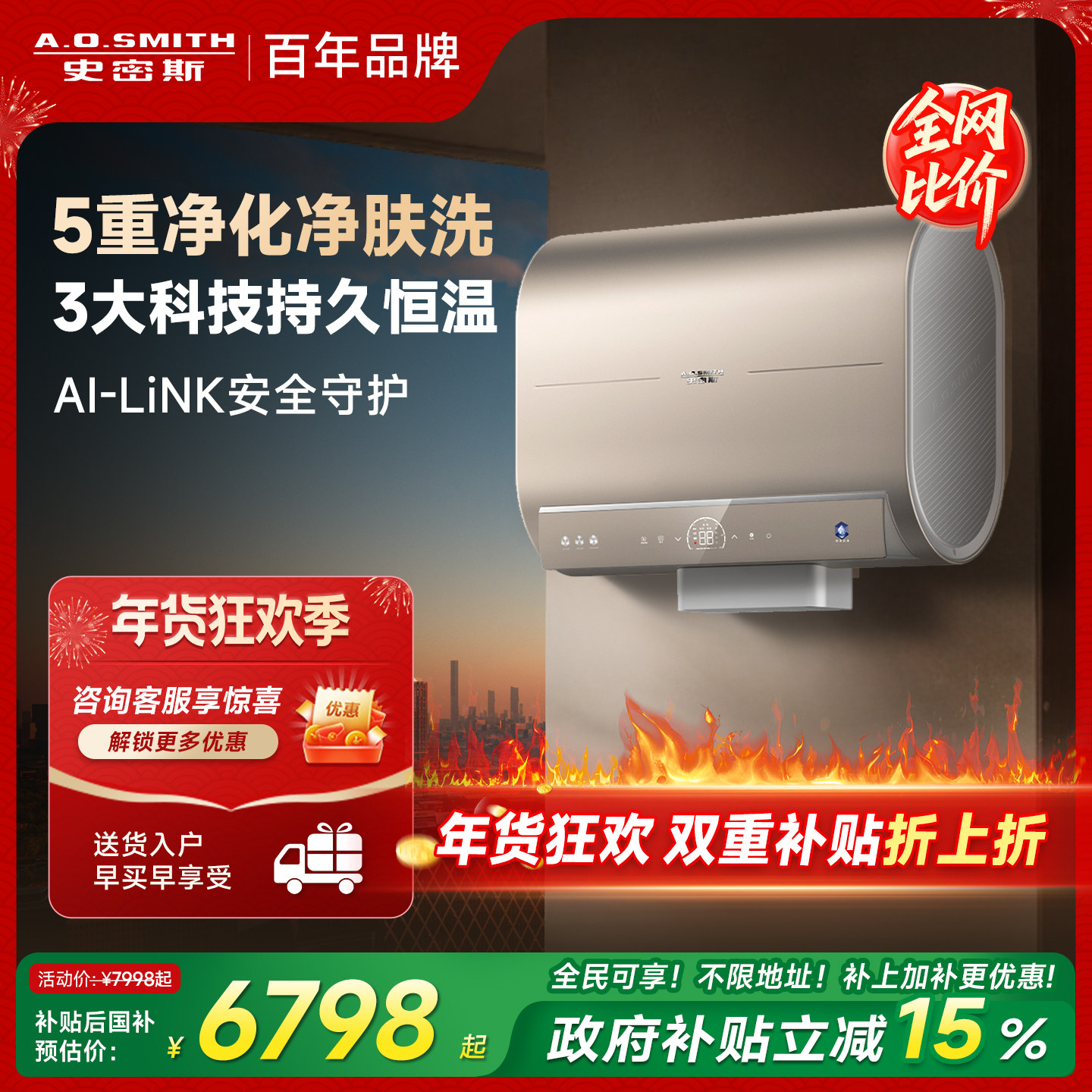 国补AO史密斯电热水器60/80升ED8免换镁棒免清洗以旧换新补贴家用