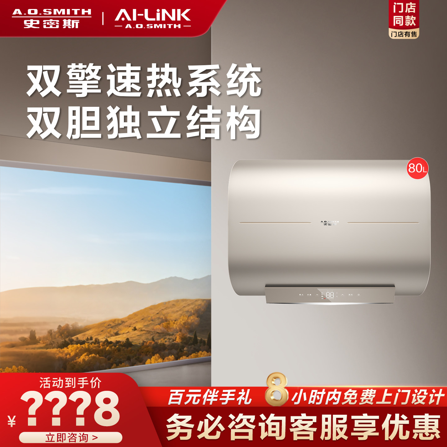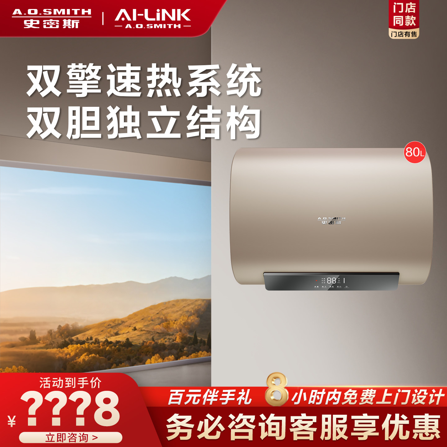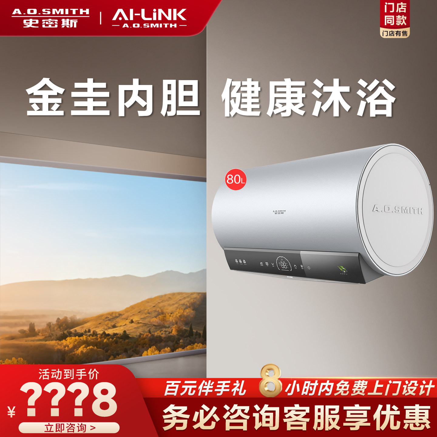 新款AO史密斯电热水器家用洗澡储水式速热80升电子镁棒出水断电
