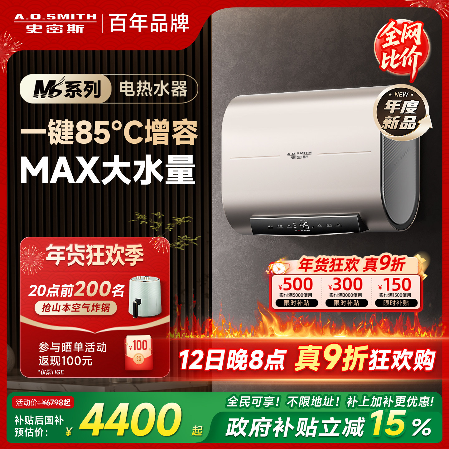 A.O.史密斯电热水器家用智能双胆擎双3KW速热MS安全金圭内胆耐用