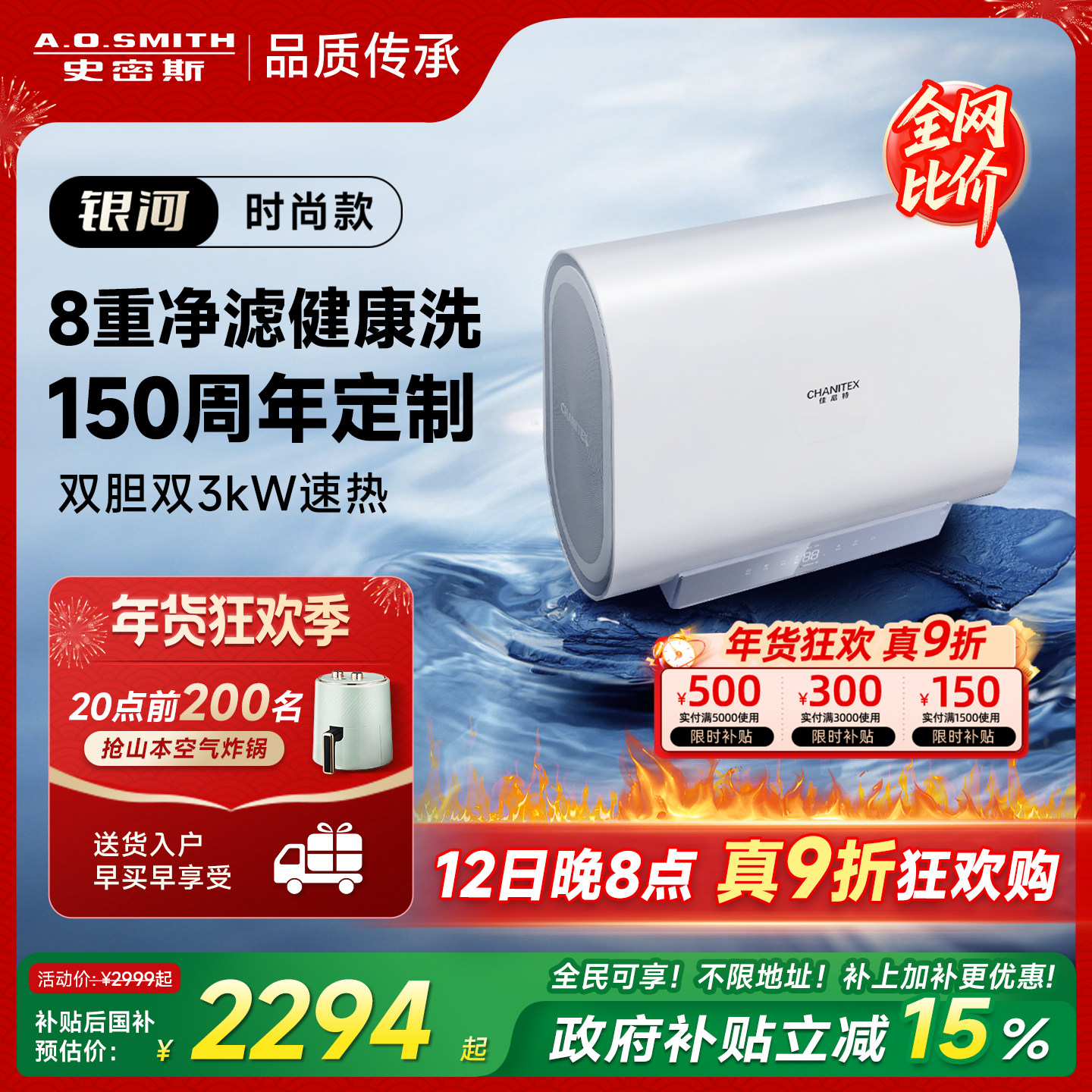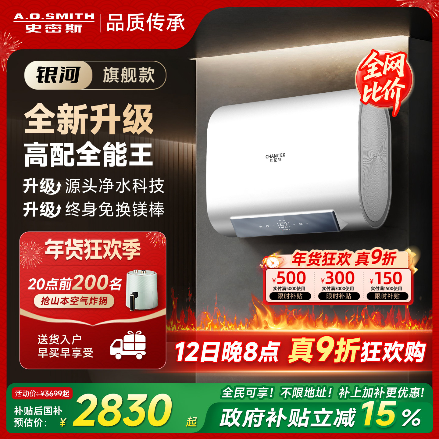 国补AO史密斯佳尼特银河电热水器60/80升HTS免清洗免换镁棒卫生间
