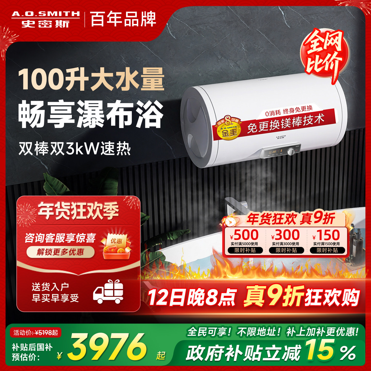 国补AO史密斯电热水器E100MDG免换镁棒速热大水量100升一级能效