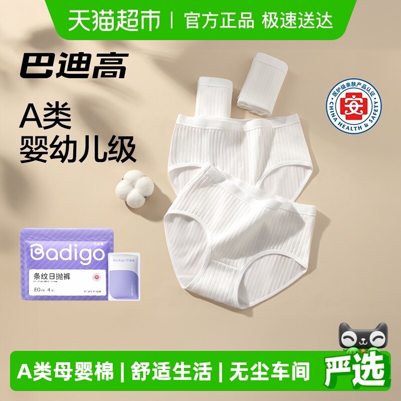 巴迪高条纹白一次性内裤女士纯棉无菌月子产妇三角便携免洗日抛裤